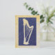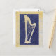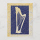 A harp sillhouette in deep blue on a subtle gold and grey background, textured in a stone-like texture. Simple but beautiful and classic . . . a great postcard for any harp lovers.