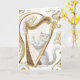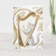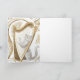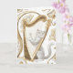 An elegant greeting card showcasing a gentle cat playing a decorative harp, surrounded by golden flourishes. A graceful choice for thoughtful messages and refined occasions.