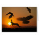 Harris Hawks. The Harris Hawk is the only bird of prey that hunts in family groups like wolves. Three Harris Hawks hunt down a jackrabbit. The fire of the setting sun behind them. Computer art by Kathie Miller.