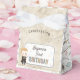 Celebrate your little wizard’s birthday with this charming favor box featuring a cute chibi-style illustration inspired by Draco Malfoy from the Harry Potter series. The design showcases the character in a Slytherin-themed robe holding a wand, surrounded by colorful starburst accents. A parchment-style border frames the layout, while playful wizarding icons decorate the back of the box, including books, cauldrons, and magical creatures. Personalize with your child’s name and age to create a magical first birthday or any age celebration that’s sure to delight Harry Potter fans of all ages.