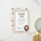 Celebrate your little one on the way with this magical baby shower thank you card featuring a sweet chibi-style illustration inspired by Hermione Granger from the Harry Potter series. The design showcases the clever witch wearing her Gryffindor robe and holding a wand, surrounded by pastel starburst accents. A parchment-style texture frames the invitation details, while the back is decorated with whimsical wizarding icons like books, cauldrons, and magical creatures. Customize with your names and message to create an enchanting thank you card perfect for any Harry Potter-loving family.