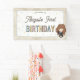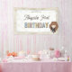 Bring a touch of magic to your celebration with this charming birthday banner featuring a cute chibi-style illustration inspired by Hermione Granger from the Harry Potter series. The design showcases the clever young witch wearing her Gryffindor-themed robe and holding a wand, surrounded by colorful starburst accents. A parchment-style border frames the layout. Personalize with your child’s name and age to create a sweet and enchanting banner perfect for any little wizard or witch.