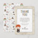 Thank your guests for coming to your baby shower with this adorable Harry Potter baby shower invitation featuring Ron Weasley. The design showcases a cute illustration of Ron in his Hogwarts robes holding his wand, surrounded by colorful star accents. The card's text is artfully arranged with playful and elegant fonts, customizable with the honoree’s message and name. A unique arched shape gives it a storybook feel, while the back displays a delightful pattern of wizarding world icons including cauldrons, potions, spell books, and magical creatures. Perfect for any Harry Potter fan, this thank you card sets the scene for an enchanting celebration.