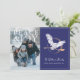 Send magical holiday greetings with this enchanting Harry Potter-themed Christmas card! One side of the card is dedicated to a cherished horizontal family photo, capturing a joyful winter moment, overlaid with "PEACE & JOY" in elegant white lettering. The other side features a deep navy blue background with a beautiful illustration of Hedwig the owl soaring with a broomstick, surrounded by stars and a subtle "HAPPY HOLIDAYS" message. Below this magical scene, customizable text allows for the family name and individual names in an elegant script, framed by a delicate white border. This card perfectly blends the warmth of family holiday traditions with the beloved world of Harry Potter, making it a truly special and memorable greeting.
