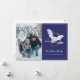 Send magical holiday greetings with this enchanting Harry Potter-themed Christmas card! One side of the card is dedicated to a cherished horizontal family photo, capturing a joyful winter moment, overlaid with "PEACE & JOY" in elegant white lettering. The other side features a deep navy blue background with a beautiful illustration of Hedwig the owl soaring with a broomstick, surrounded by stars and a subtle "HAPPY HOLIDAYS" message. Below this magical scene, customizable text allows for the family name and individual names in an elegant script, framed by a delicate white border. This card perfectly blends the warmth of family holiday traditions with the beloved world of Harry Potter, making it a truly special and memorable greeting.
