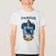 Unlock the magic of wit and wisdom with this sophisticated custom Ravenclaw t-shirt! Highlighting the majestic house crest with its iconic raven emblem on a blue shield, this white tee is a smart choice for any clever kid. The design is personalised with your child's name in matching blue letters above the crest, making it a unique treasure for their wardrobe. Whether they are hitting the library or exploring the backyard, this shirt lets them display their house loyalty with pride.