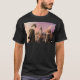 I give wanted to give this a 4 instead of a 5 because these Basic DARK T0shirts run unexpectedly SLIM or Narrow. Which is great if you do not have a potbelly, but I have a paunch. It isn't the shirt's fault that I've got a beer belly. The design and shirt itself is a quality cotton shirt. The color is more of a deep purple, but still a very pretty color. The Basic DARK T-shirts run a bit SLIMMER than the Basic Ts. The neck is a fraction narrower (or seems to be narrower) also. I'm a paunchy middle-aged woman and my neck is 12 inches (31cm) thick and the neckline fell about the same as in the photo of the man, and I had the desire to tug it a bit. So if you're a thick necked man or like loose shirts, be aware these are slimmer shirts. Once I get rid of my lockdown paunch it'll look great. The shirt washed well in cold water with no apparent bleeding. We don't have a dryer, so it hung dry. Did not shrink. Love the colors and the design. The design looks smaller on my shirt than it does on the model on-line. But still, it looks good on the shirt. The printing looks as it does on the model, just the size seems fractionally smaller. Washed garment in cold water, hung dry and design appeared unaffected.