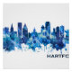 Blue Watercolor Skyline of Hartford, the capital of Connecticut