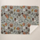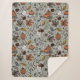 This Fall "Harvest and Horns" sherpa blanket features a Western autumn scene of colourful pumpkins, cow skulls adorned with roses, acorns and Fall foliage against an elegant sage green background.