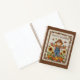Celebrate the bounty of the season with the "Harvest Blessings" journal. This cover features a heartwarming faux-embroidery illustration of a smiling scarecrow dressed in plaid and denim, standing in a vibrant autumn field. The scene is rich with "hand-stitched" details, including towering sunflowers, plump pumpkins, and a variety of colorful songbirds perched on the scarecrow's arms and around the field. Enclosed in a rustic vine and leaf border on a linen-textured background, this notebook brings the cozy charm of the fall harvest to your writing.