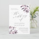 Rustic elegant wedding invitation invitation features soft grey lettering in chic block and italics with calligraphy accents, with sprays of watercolor fall foliage at the corners in muted shades of blush pink, lavender and burgundy.