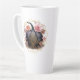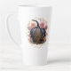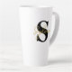 This custom monogrammed mug features a black and gold colored pumpkin with floral accents over a gold colored double hexagon frame. The monogram on the other side can be customized with any letter or name. The font and text colors may be customized as well, and the images may be adjusted for size or placement.