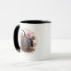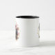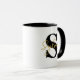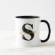 This custom monogrammed mug features a black and gold colored pumpkin with floral accents over a gold colored double hexagon frame. The monogram on the other side can be customized with any letter or name. The font and text colors may be customized as well, and the images may be adjusted for size or placement.