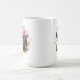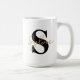 This custom monogrammed mug features a black and gold colored pumpkin with floral accents over a gold colored double hexagon frame. The monogram on the other side can be customized with any letter or name. The font and text colors may be customized as well, and the images may be adjusted for size or placement.
