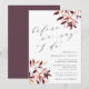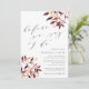 Rustic elegant rehearsal dinner invitation features dark plum brown lettering in chic block and italics with calligraphy accents, with sprays of watercolor fall foliage at the corners in rich autumn harvest shades of purple and golden plum.