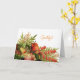 These cards have a colourful assortment of fruits and berries. This woodsy-forest gathering is designed in rich autumn-harvest colours. There’s also a design on the back. These are great for Thanksgiving or a fall party. Blank card inside. Customise with your own message.