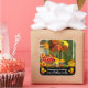 A colourful harvest time sticker with fruits and vegetables, flowers and leaves by a wooden fence, add the text of your choice, and add a special touch to your Thanksgiving mail this year!
