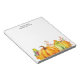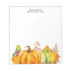 Personalised notepad with a watercolor illustration of pumpkins and seasonal autumn leaves.