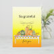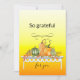 Send a friend or family warm Thanksgiving wishes with your own personalised text editable on front and back. Watercolor style image of gourds and pumpkins with leafy fall foliage heaped on a white table. Sunny orange and yellow gradient style background sets it all off.