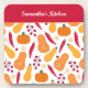 Harvest Vegetable Pattern with Name Orange and Red Coaster