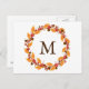 Harvest fall wreath with acorns, orange leaves, twigs, and red berries. Customisable background colour and text!