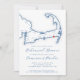 This casual rehearsal dinner invitation features a modern, elegant navy blue Cape Cod map theme, perfect for a wedding in Harwich Port, MA. Celebrate your pre-wedding gathering in style with this chic design that sets the tone for a memorable evening. Ideal for venues like Wychmere Beach Club, Wequassett Resort, and Chatham Bars Inn. The sophisticated map adds a personal touch to your Cape Cod celebration. Artwork by Coastal Map Designs.