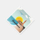 A design inspired by vintage travel posters. The stunning a son to mosque on the coast of Casablanca, Morocco. An aeroplane flies in the sky and the mosque is framed by the sun. A colourful design for people who love to travel and explore in Morocco and North Africa.
