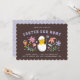 Invite friends and family to a festive Easter egg hunt with this sweet, whimsical party invitation. The main focus of the design is the hand-drawn illustration of a chick hatched from an egg, surrounded by colourful flowers and leaves. The back of the card features a simple dot pattern.