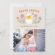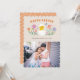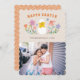 Wish friends and family a festive and Happy Easter with this sweet, whimsical holiday photo card. The main focus of the design is the hand-drawn illustration of a chick hatched from an egg, surrounded by colourful flowers and leaves. The back of the card features a simple dot pattern.
