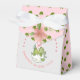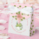Send your guests home with a sweet treat in these adorable favour boxes! These boxes feature a charming watercolor hatching dinosaur wearing a sweet pink bow. The main part of the box has a whimsical green dino footprint pattern on a pink background, while the flap is adorned with a beautiful pink flower. They are perfect for filling with candies, chocolates, or small keepsakes as a thank-you to your guests. These favour boxes are an essential part of your matching "Girl Can Roar Too" collection and are a delightful way to complete your party theme!