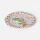 Serve up some sweetness with these adorable personalised paper plates! The centre of the plate features a charming watercolor hatching dinosaur wearing a cute pink bow, while the rim is decorated with a playful green dino footprint pattern on a pink background. The plate proudly announces "IT'S A GIRL!" and can be customised with the honoree's name and baby shower date. These sturdy, disposable plates are perfect for serving cake or snacks and are a delightful addition to your "Girl Can Roar Too" dinosaur-themed celebration, ensuring every detail coordinates beautifully!