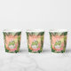 Serve up some sweetness with these adorable personalised paper cups! This design features a charming watercolor illustration of a little dinosaur hatching from its egg, now wearing a cute pink bow. The background is a stunning watercolor jungle scene with a gradient of warm oranges and soft pinks, creating a tropical sunset feel. It is customised with "IT'S A GIRL!" and the mummy-to-be's name and baby shower date. These sturdy paper cups are perfect for any hot or cold beverage and are a must-have for a cohesive and fun dinosaur-themed celebration. They perfectly coordinate with our full "Girl Can Roar Too" collection!
