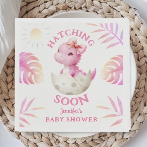 Hatching Soon Baby Shower Girl Pink DinoDesigned by H-Art Studio Design