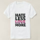 With all the bad things we see on the news, everybody can use a little bit more love in their lives. So, Hate less and love more. Customise the t-shirt style and colour. More that 90 styles of clothing to choose from.