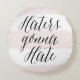 Haters Gonna Hate Modern Calligraphy Pink Stripes Round Cushion