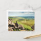 This postcard features a painting of Hathersage Moor and the view from Higger Tor towards Carl Wark, Derbyshire Peak District, England.