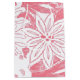 Soft coral strokes dance over a crisp white base, forming oversized florals and bold organic marks that feel hand-drawn, almost ritualistic. The texture carries movement. The composition feels alive.