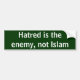 "Hatred is the enemy, not Islam" in white lettering on a green background.