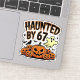 Unique Halloween design featuring pumpkins, ghost, bats, and “Haunted By 67” text.