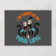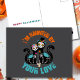These sugar skull cats aren’t just spooky—they’re hopelessly haunted by love. This quirky Halloween postcard features two wide-eyed skeleton cats and one very brave little mouse, with the phrase “I’m Haunted by Your Love” standing out against a bold dark grey background. It’s the purr-fect way to send Halloween affection to someone who gets your spooky-sweet side. The back includes a simple “HAPPY HALLOWEEN” message, leaving room for your own eerie (or adorable) note.