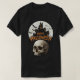 A classic and spooky Halloween design featuring a cracked skull in front of a haunted castle under a full moon with flying bats. This atmospheric graphic is perfect for anyone who loves traditional Halloween imagery and horror.
