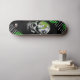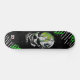 Dd brand urban decay looking skateboard done black with a distressed haunting white and black clown face, with white and neon green accents.