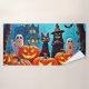 Prepare for a spine-tingling Halloween adventure with this captivating image. A masterpiece crafted by AI and refined by a skilled artist, this unique design brings to life the enchanting spirit of the season. Grinning jack-o'-lanterns cast an eerie glow, while a mysterious witch and her black cat stand guard before a haunted house. Bats soar across a moonlit sky, adding to the spooky ambiance. Perfect for anyone seeking a truly unique and artistic take on the Halloween holiday, this image is a testament to the blend of technology and human creativity.