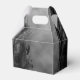 A Halloween party favour box with black and white art of a spooky sky with misty trees, gothic ravens and a cloudy full moon. Click Customise It to add your custom text, even save your design for later.
