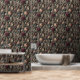 Gold-gilded scrolls rise like cathedral chords while florals bloom in defiant notes of burgundy and blush. But it’s the chorus of snarling grotesques and whispering cherubs that carries the melody—Haunted Harmonics hums with a baroque dissonance, as if every bloom remembers a darker refrain.