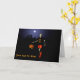 Not into trick-or-treating on Halloween? How 'bout a little pickup game of hoops? Features a skeleton dribbling a Jack O'Lantern in pace of a basketball. The skeleton is wearing a t-shirt emblazoned with the number "7" and team name "GHOULS." The moon hovers over a dark city skyline in the distance. Add your own text.