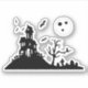 A spooky haunted house sits on a hill under a moonlit sky. this design is for Halloween decorations!