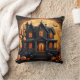 Haunted house with halloween pumpkins and bats under full moon, Happy Halloween