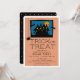 This cute haunted house halloween birthday party invitation card features a haunted house with a spider and bats on orange background framed by a white border. The reverse side features black polka dot patterns. Personalise it for your needs. You can find matching products at my store.