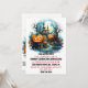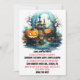 This Halloween party invitation features an illustration of a spooky dwelling, guarded by a pair of pumpkins. This festive invitation can be easily personalised to display when, where and a short list of Halloween party details you can adjust to make this card one of a kind.